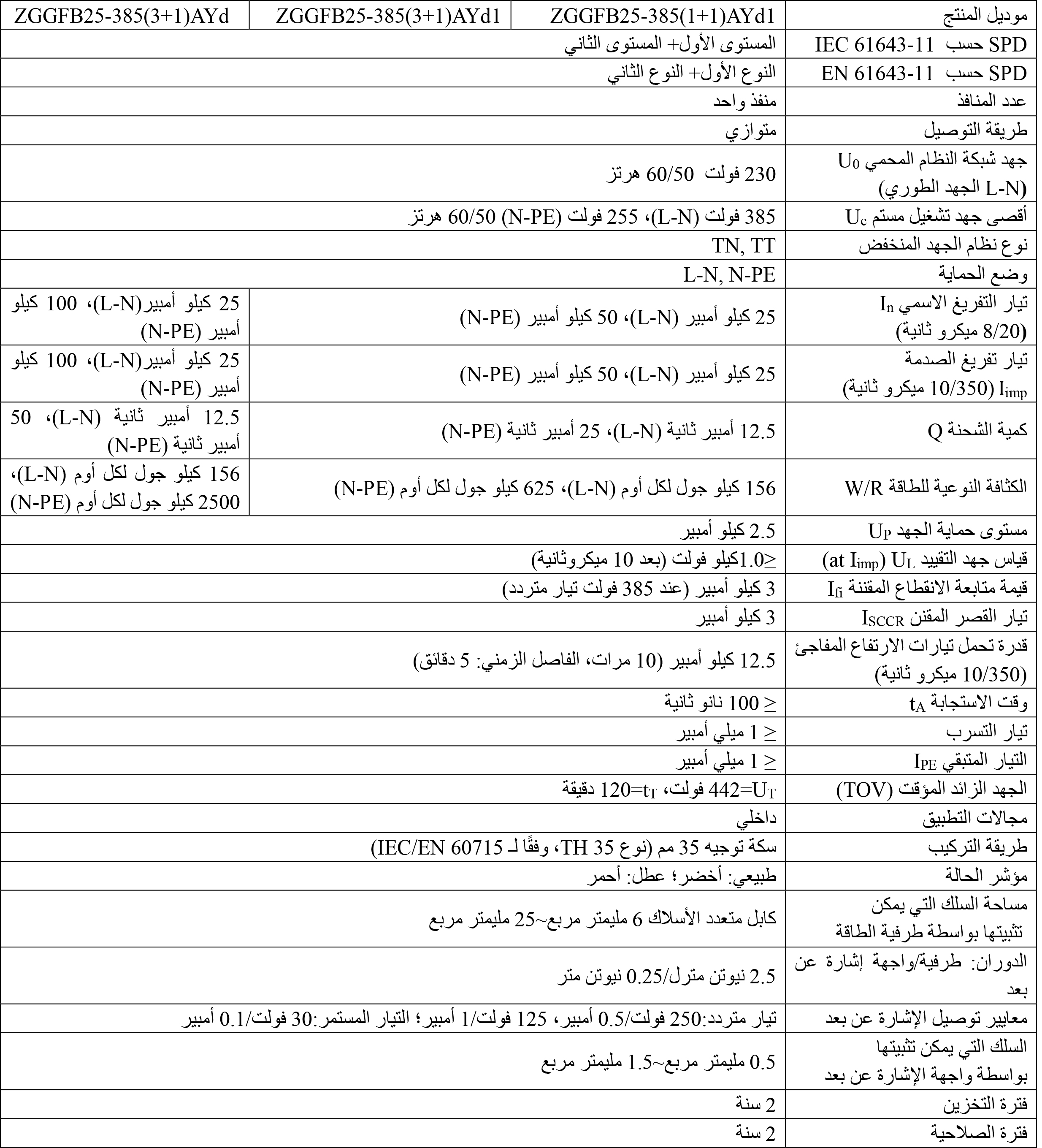 معايير التنفيذ IEC 61643-11: 2011 ; EN 61643-11: 2012