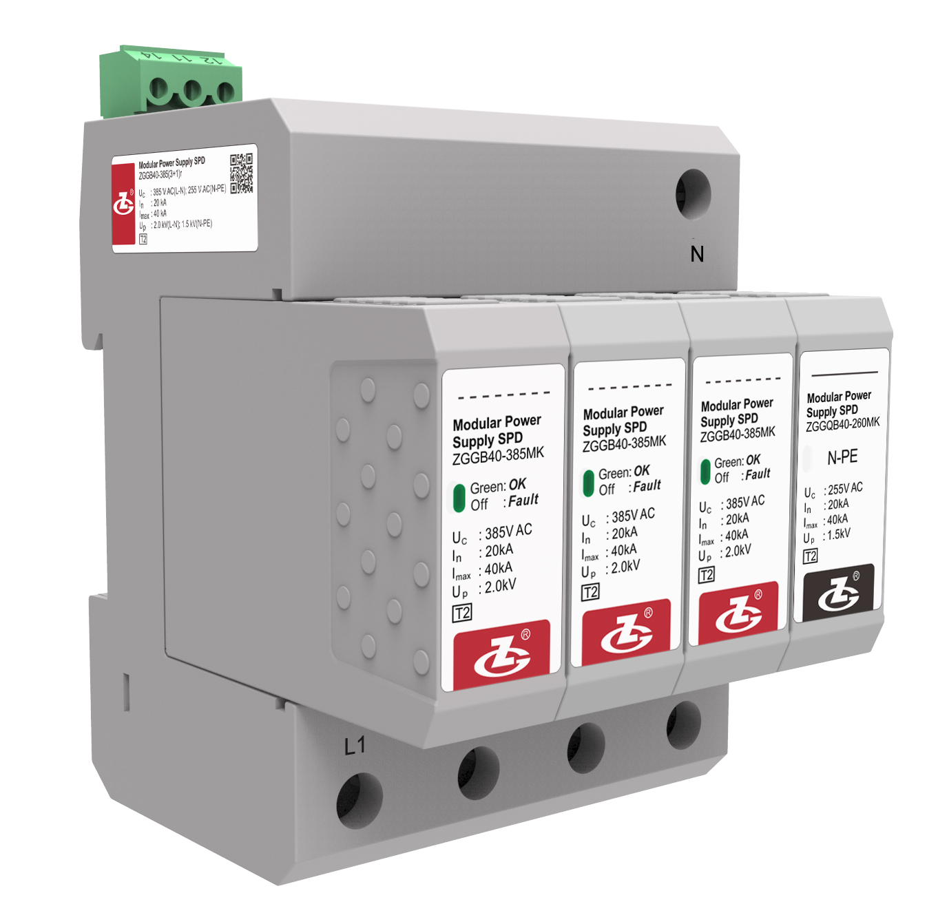 يتكون من وحدة طاقة تعمل بمقاومة حساسة للجهد، ووحدة طاقة تعمل بأنبوب تفريغ غازي، وقاعدة. يُستخدم للحماية من المستوى الثاني لـ L-N وN-PE على التوالي. يتميز واقي التيار الزائد هذا باحتوائه على صمامات مدمجة، مما يلغي الحاجة إلى صمامات احتياطية خارجية ويوفر مساحة عند التركيب.
