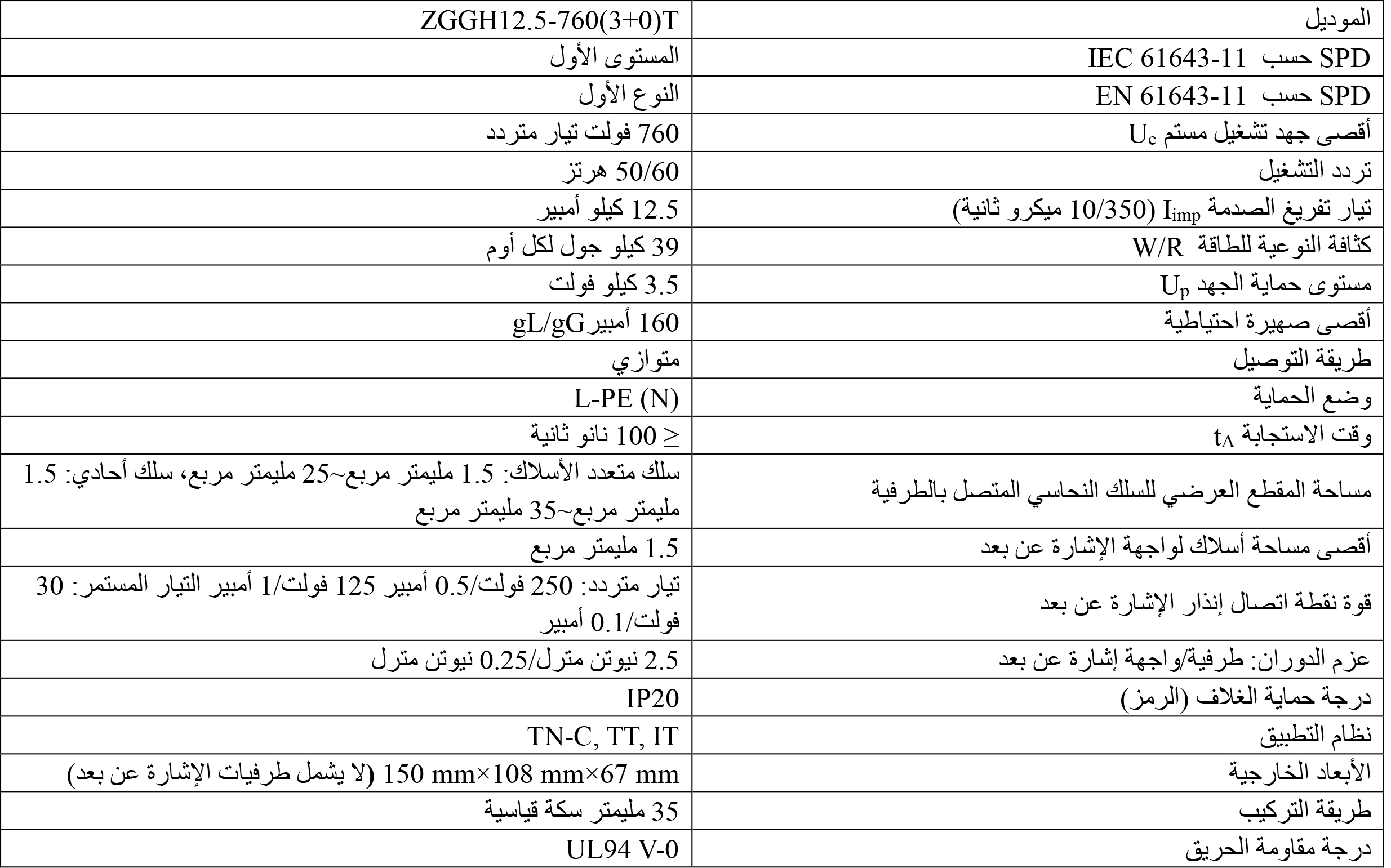 مكون من ثلاث مجموعات من واقيات التيارالزائد لوحدة الطاقة من طراز ZGGH12.5-760T، مصممة للاستخدام في أنظمة توزيع الطاقة المترددة ذات الجهد المنخفض، حيث يتم توصيلها على التوازي بين مصدر الطاقة المتردد والمعدات. يقي المعدات من تأثيرات الارتفاعات الكهربائية المفاجئة وارتفاع الجهد العابر الناتج عن العوامل الخارجية (مثل الصواعق والتداخل الكهرومغناطيسي) أو الداخلية (مثل عمليات تشغيل/إيقاف النظام، بدء/إيقاف الأحمال الحثية والسعوية).