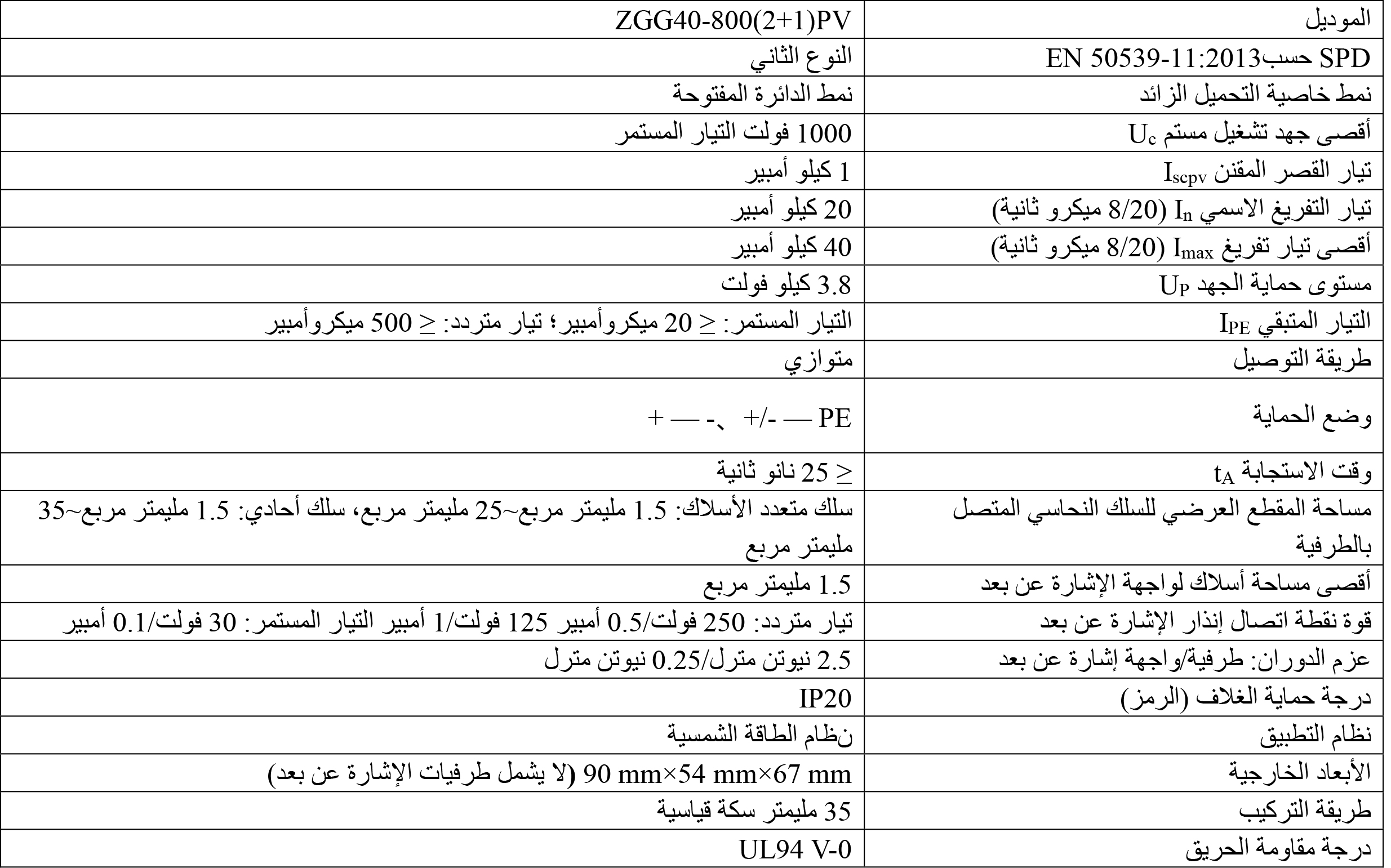 5. درجة حماية الغلاف IP 20، ودرجة مقاومة الحريق UL 94 V-0.