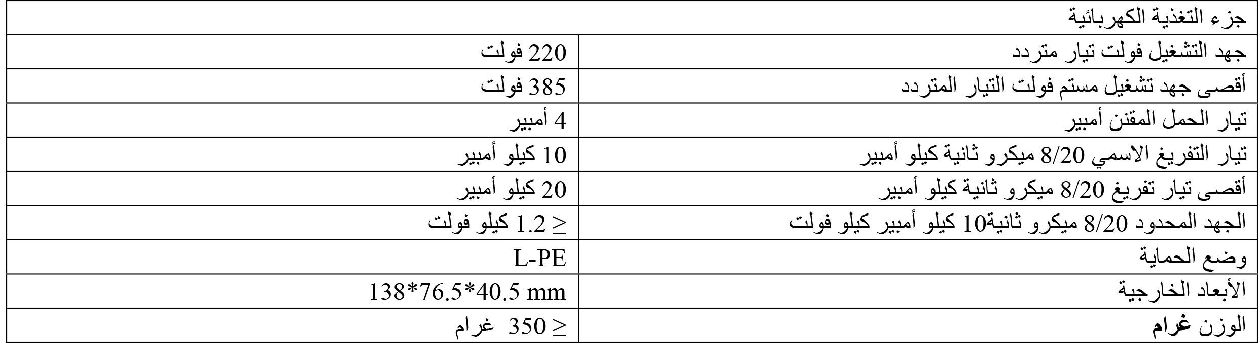 يجمع هذا المنتج بين حماية مصدر الطاقة وإشارة الفيديو في وحدة واحدة، مع غلاف معدني متين، تصميم أنيق، تركيب سهل، ويتميز بمقاومة التآكل، مضاد للاشتعال، عزل كهرومغناطيسي، ومؤشر لحالة العطل. جزء الطاقة يعمل بنظام توصيل متسلسل أحادي الطور، مناسب للأجهزة الإلكترونية والكهربائية بجهد 220 (50/60Hz) فولت تيار متردد، وتيار حمل لا يتجاوز 4أمبير؛ بينما جزء إشارة الفيديو مصمم لحماية الكاميرات وغيرها من الأجهزة المشابهة. الغلاف المعدني لمقبس RJ45 وغلاف المنتج بأكمله يعملان كأرضية الإشارة، مع توصيل بينهما.