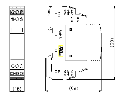 90 mm×18 mm×69 mm (No incluye terminales de señalización remota) |