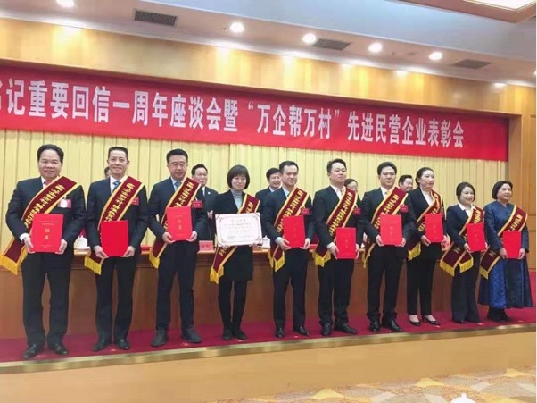 为深入贯彻落实习近平总书记的重要回信精神,表彰先进、树立典型,激励广大民营企业更加踊跃更加高效参与脱贫攻坚战,全国“万企帮万村”行动领导小组于近日在北京召开“贯彻落实习近平总书记重要回信一周年座谈会暨“万企帮万村”先进民营企业表彰会”。在会上,皇冠体育等99家民营企业被授予——全国“万企帮万村”精准扶贫行动先进民营企业。