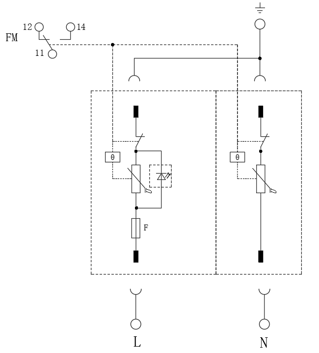 ZGGB40-385(2+0) 금속산화물바리스터(MOV)형 전원 모듈 베이스로 구성되며, 각각 L-N, N-PE 간의 Class 2 보호에 사용됩니다. 본 전원 모듈 서지보호장치는 내장형 퓨즈를 탑재하고 있어 별도의 외부 백업 퓨즈 없이 설치 가능하며, 공간을 절약할 수 있습니다.