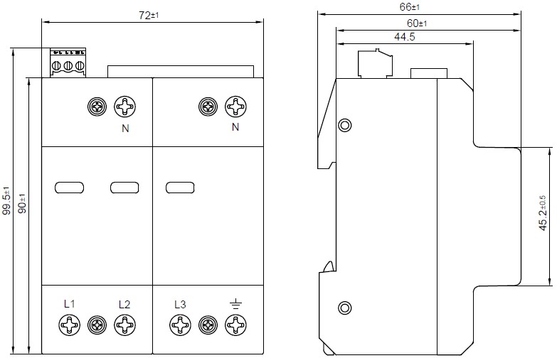 99.5±1mm×72±1mm×66±1mm (L×W×H)