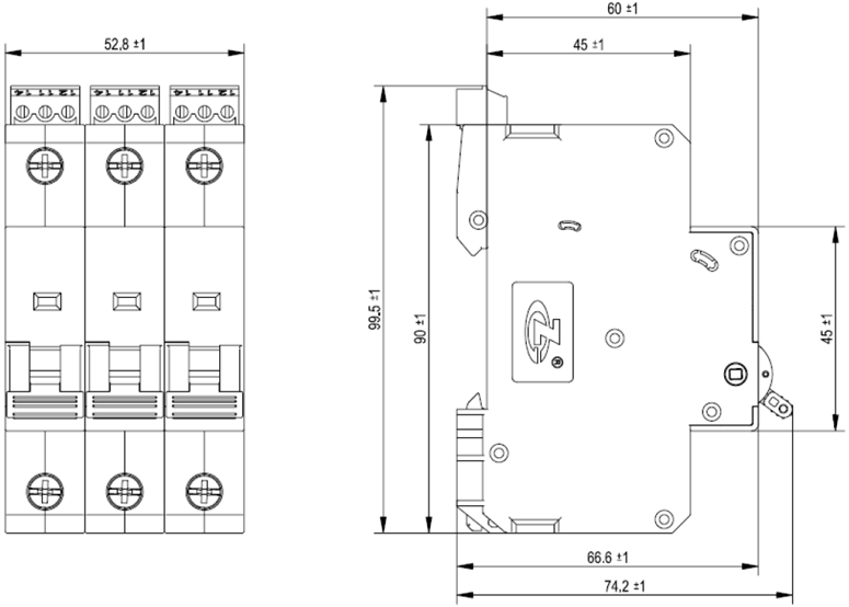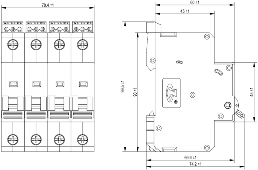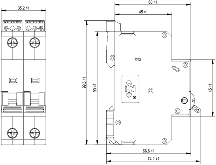 | 外型尺寸 | 90 mm×17.6 mm×74.2 mm(不包含遥信尺寸) | 90 mm×35.2 mm×74.2 mm(不包含遥信尺寸) | 90 mm×52.8 mm×74.2 mm(不包含遥信尺寸) | 90 mm×70.4 mm×74.2 mm(不包含遥信尺寸) |
